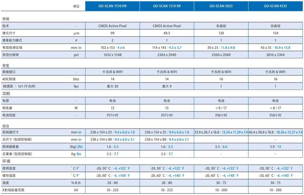 GO-SCAN 數(shù)字平板探測(cè)器技術(shù)參數(shù)